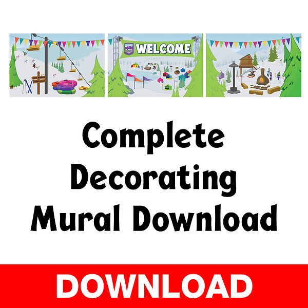Snowball Mountain Challenge setting, and provide an instant WOW! The Mural Package includes three unique murals (nine panels total) that will complete any VBS stage area! With nine tiles that hang side by side, the murals serve as the ideal backdrop for Assembly Time at Celebration Village, music areas, recreation areas, and much more.
